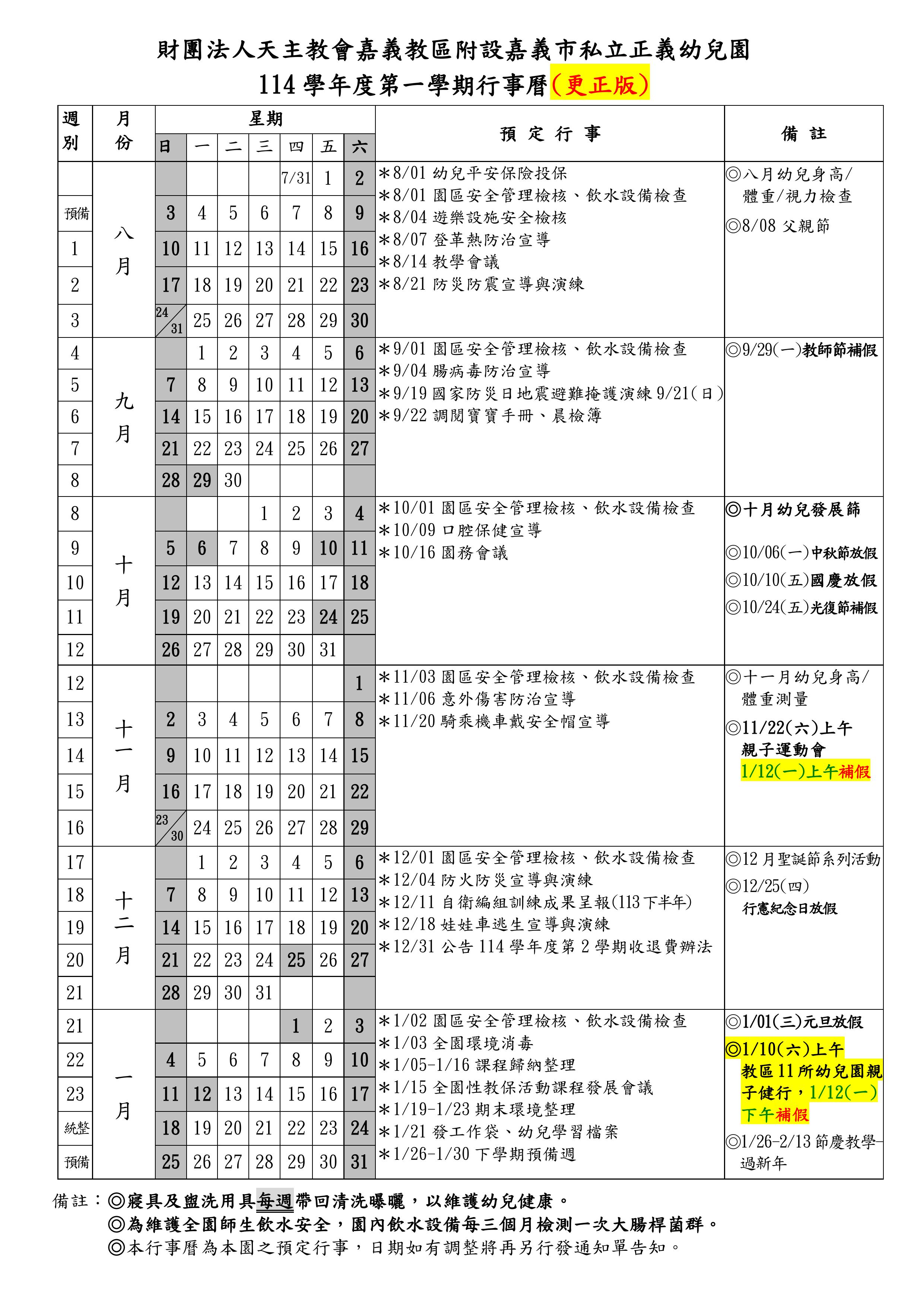 原訂114.11.01(六)教區11所幼兒園親子健行,改期至115.1.10(六),請大家先預留時間哦~~