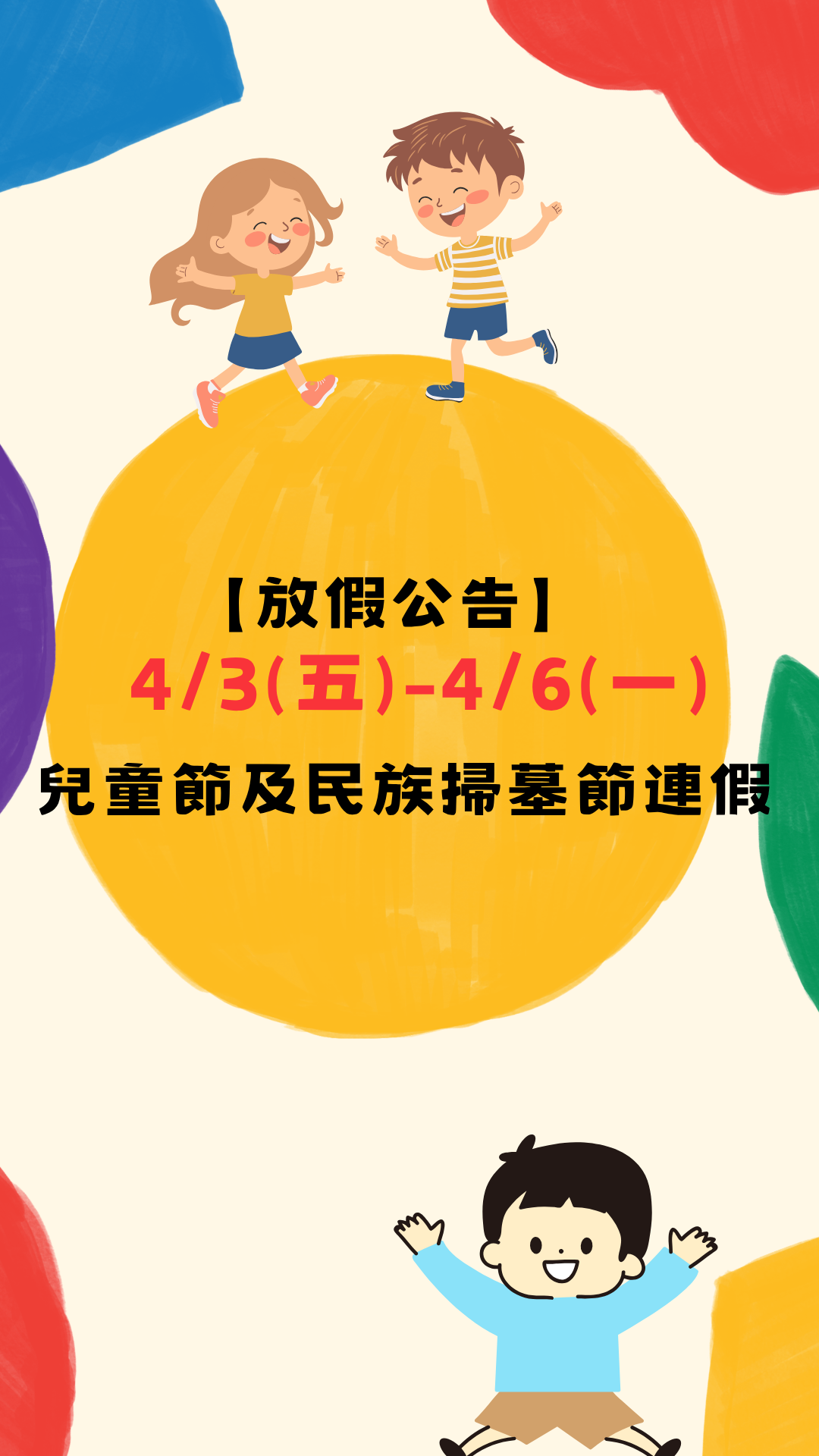 [休假公告]115.0403-0406兒童節及民族掃墓連假