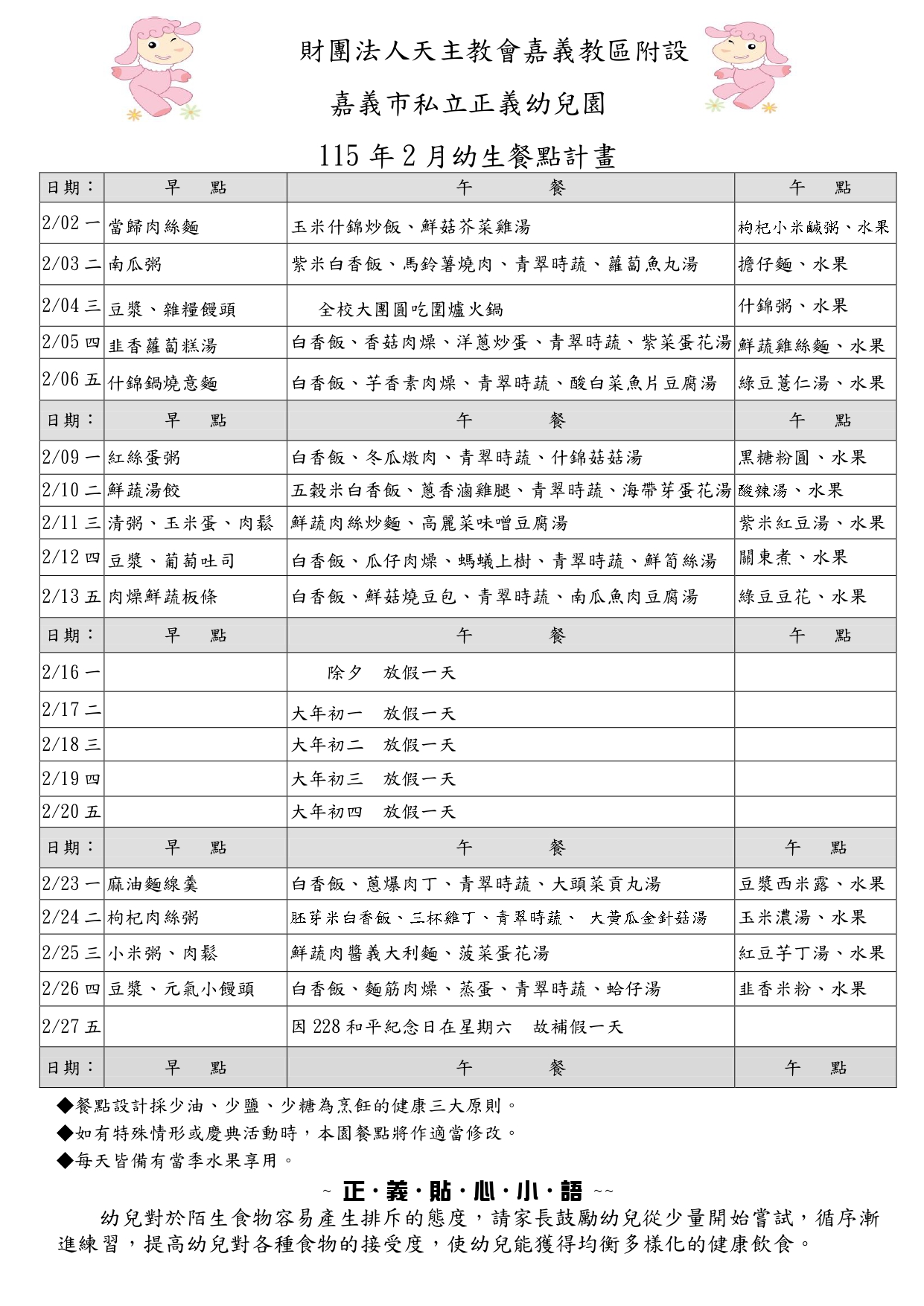 115年2月餐點表