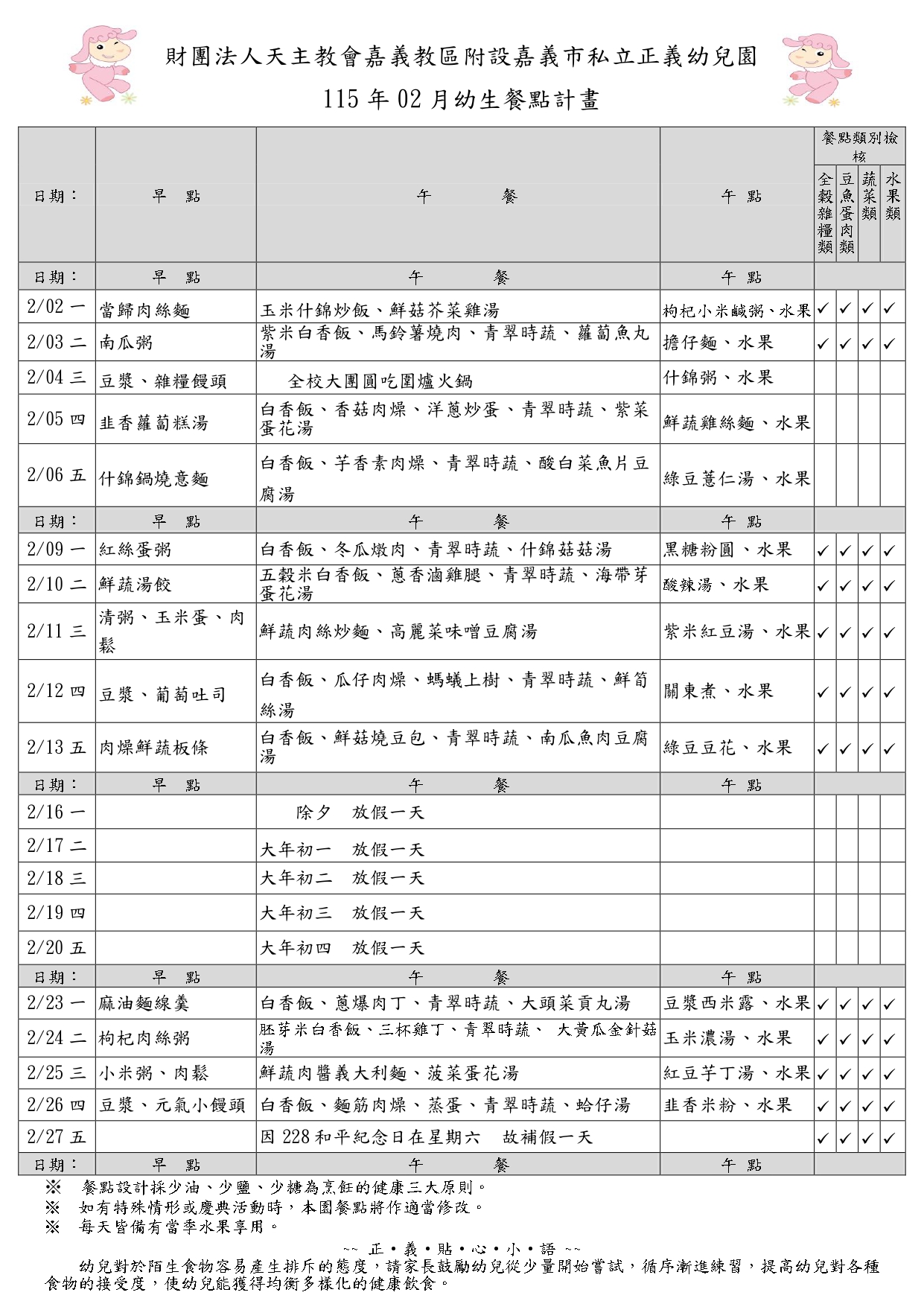 115年2月餐點表